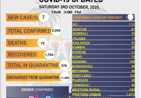 Apo Group Africa Newsroom Press Release Coronavirus Sierra Leone Covid 19 Update 3 October 2020